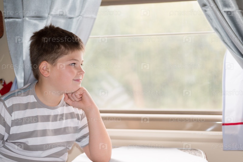 Мальчик смотрит в окно поезда