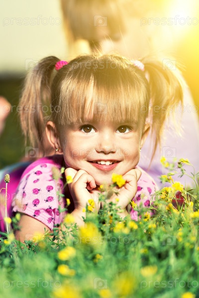 Портрет счастливой девочки на лугу