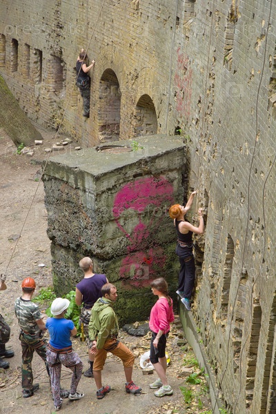 Молодые люди практикуются в альпинизме