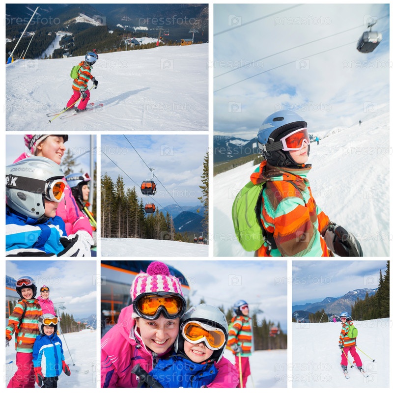 Лыжный спорт, зима, семья