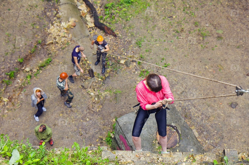 Люди практикуются в альпинизме