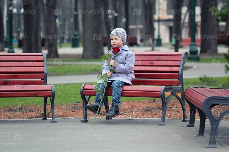 Маленький мальчик ждет в парке