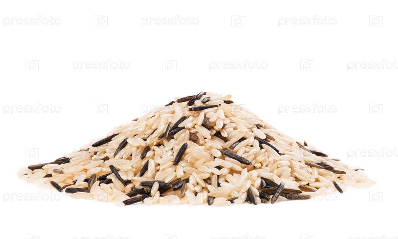 Коричневый и дикий рис на белом фоне