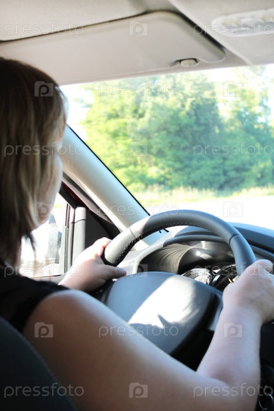 Молодая женщина ведет автомобиль