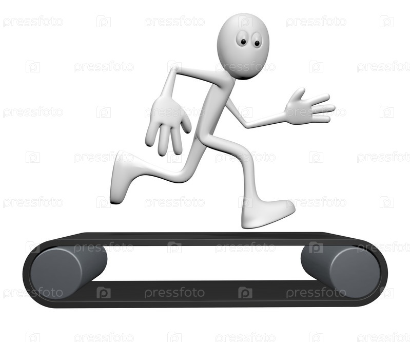 Маленький человек на беговой дорожке - 3d иллюстрация