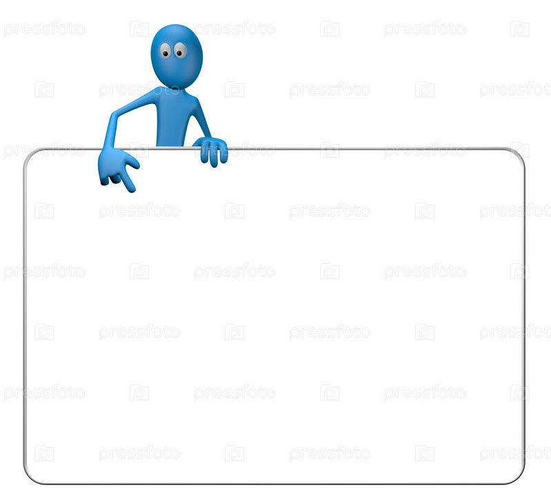 Маленький человек и пустой белый знак - 3d иллюстрация