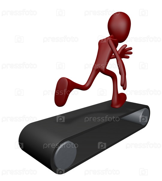 Маленький человек на беговой дорожке - 3d иллюстрация