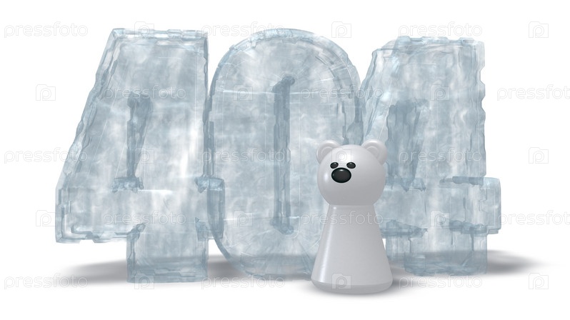 Белый медведь и цифра 404 на белом фоне - 3d иллюстрация