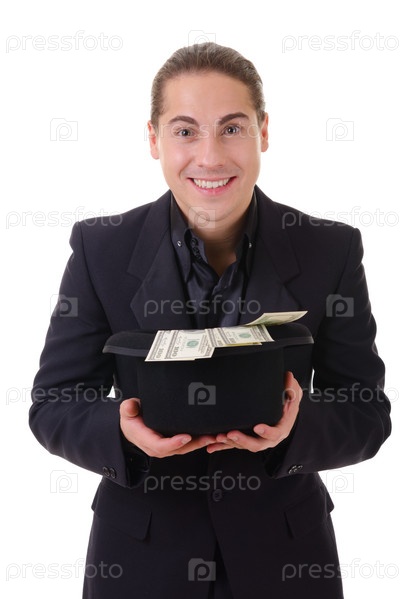 Улыбающийся мужчина с деньгами в шляпе