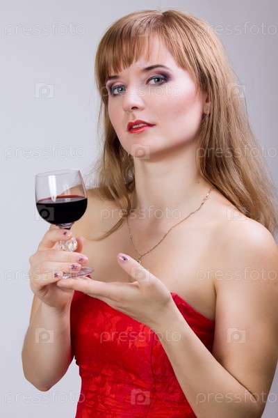 Портрет красивой молодой женщины в платье с макияжем в студии
