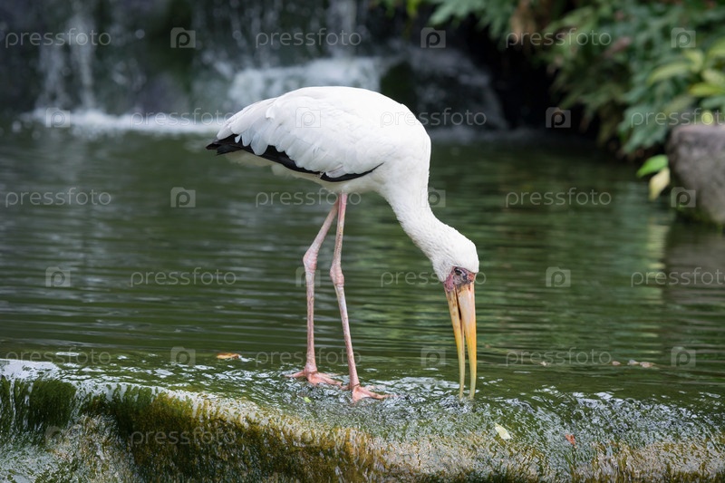 Млечный аист кормится в озере