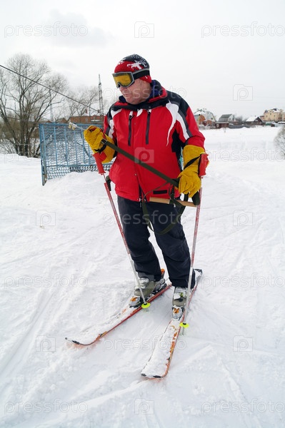 Горнолыжник на лыжах держит бугель, Домодедово, Московская область