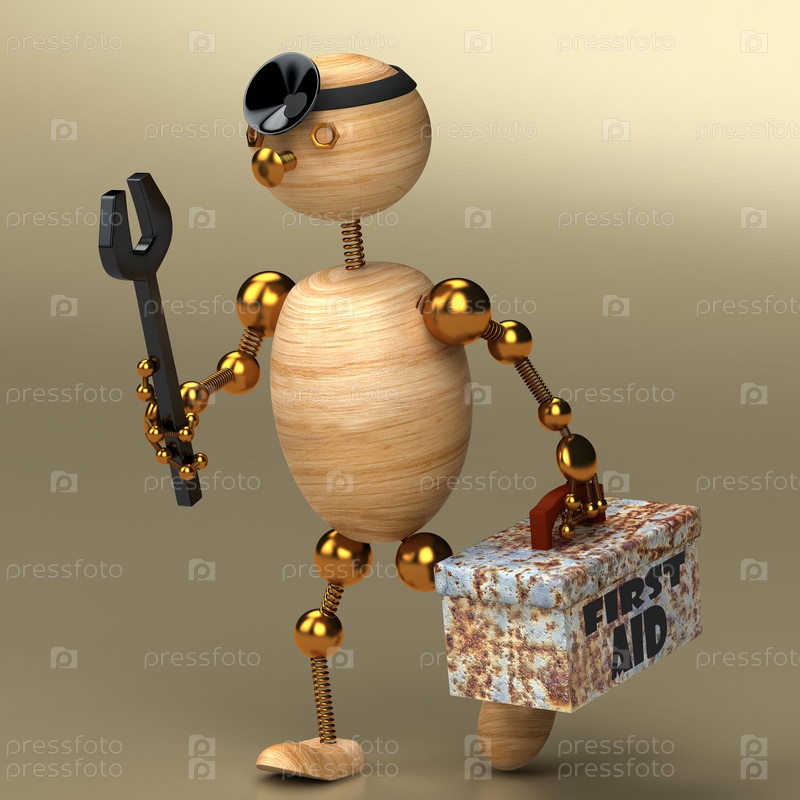 Деревянный человечек несет ящик с инструментами