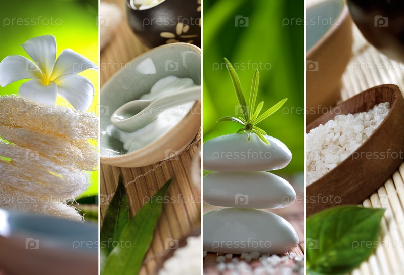 Коллаж из фотографий средств для спа-процедур