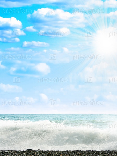 Морской прибой, ясный солнечный день