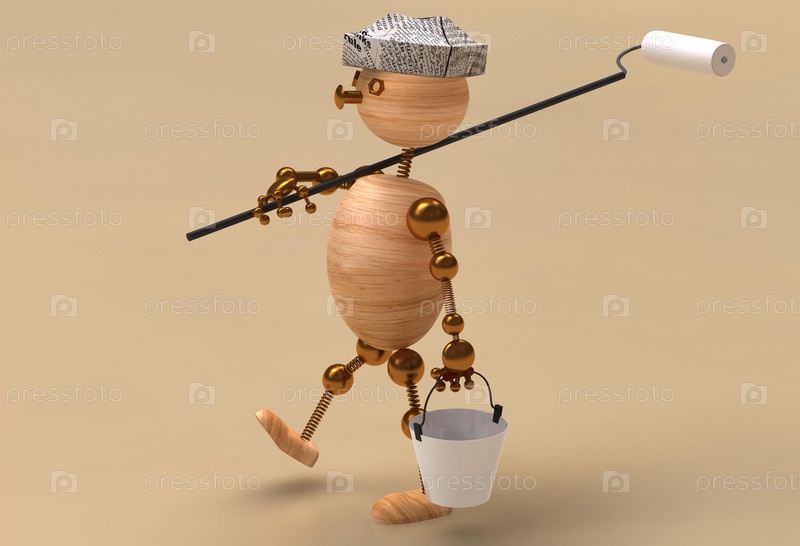Человечек с малярным валиком и ведром