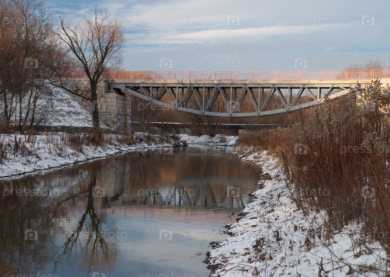 Вид на мост и реку на закате