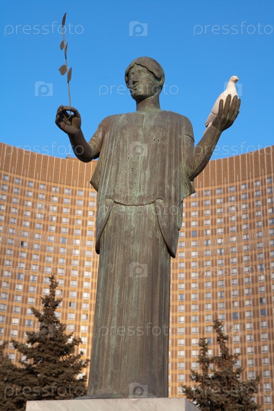 Скульптура на фоне гостиницы Космос