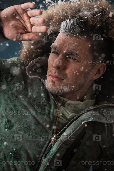 Красивый мужчина в снегу