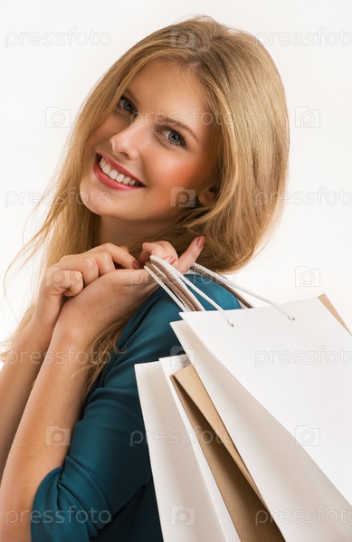 Портрет молодой счастливой женщины с сумками
