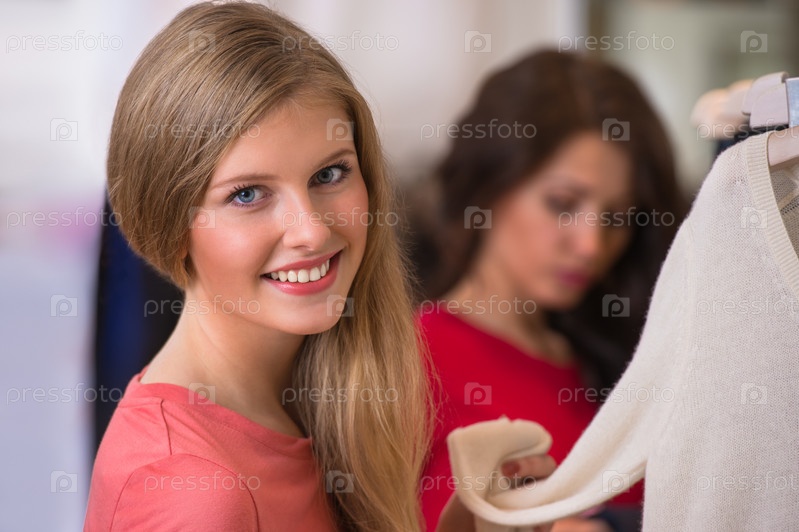 Женщины делают покупки в магазине одежды