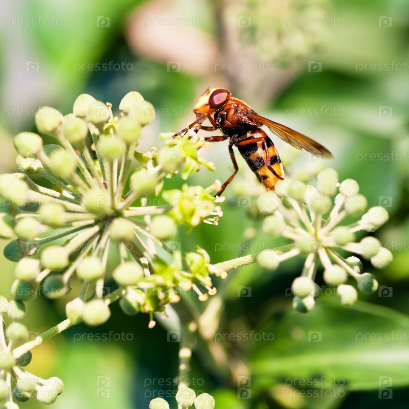 Шмелевидка, volucella inanis, на цветущем плюще