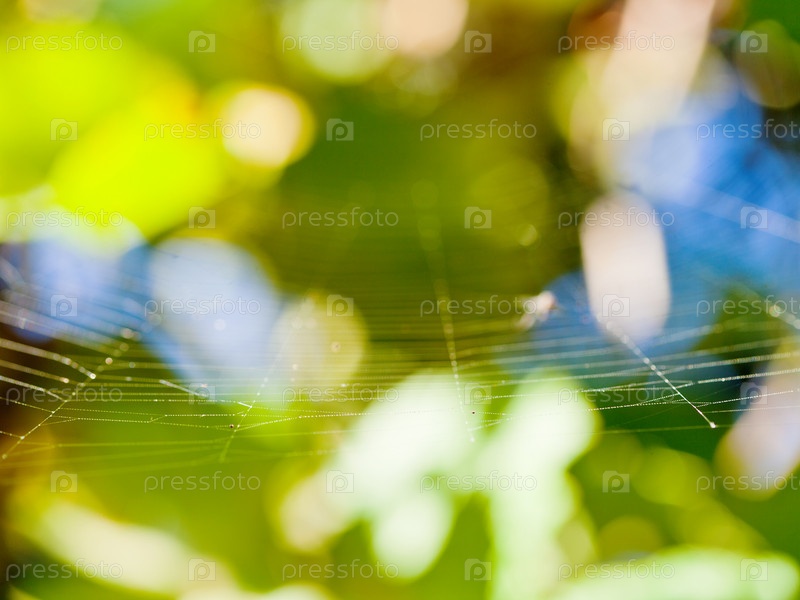 Утренняя тонкая паутинка на размытом фоне