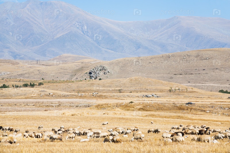 Горное плато со стадом овец