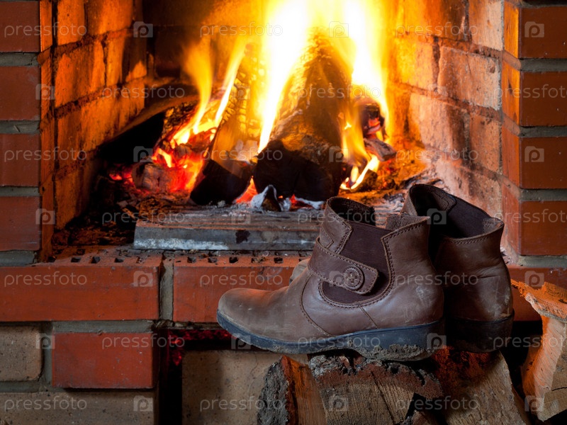 Сапоги сушатся у огня в камине