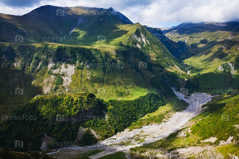 Долина реки Арагви в горах Кавказа