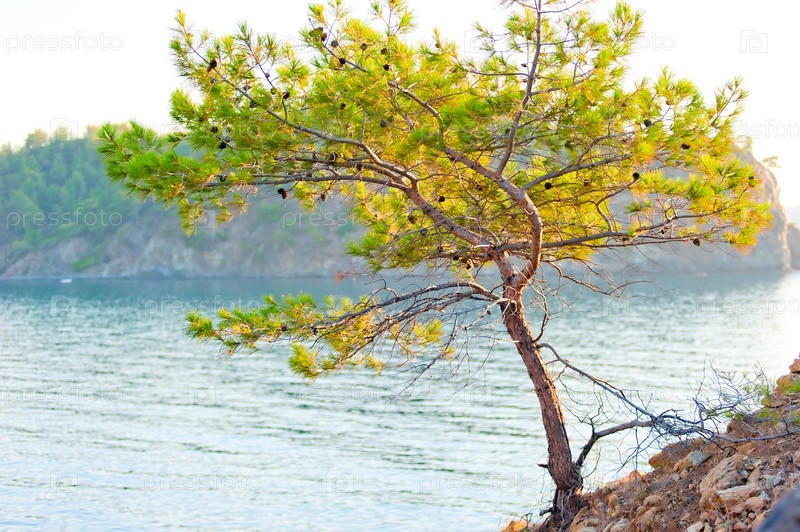 Сосна, растущая на скалистом берегу моря