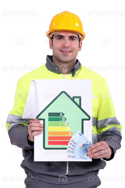 Человек с деньгами и схемой энергетической эффективности