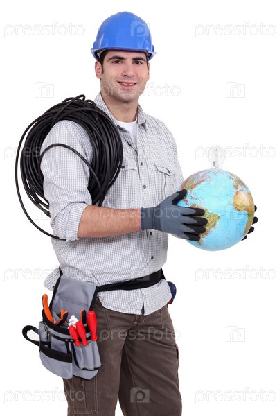 Электрик держит глобус
