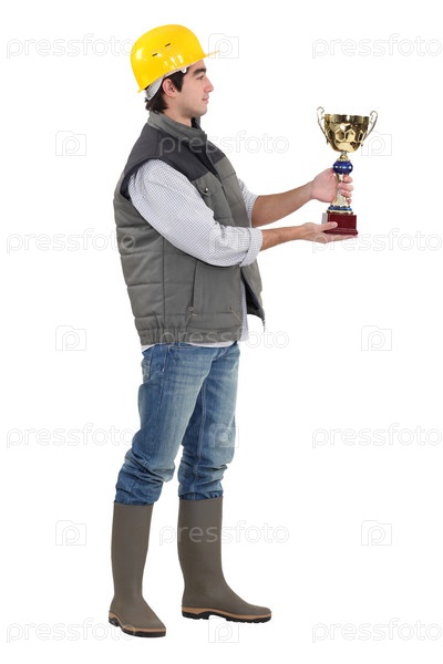 Рабочий показывает кубок