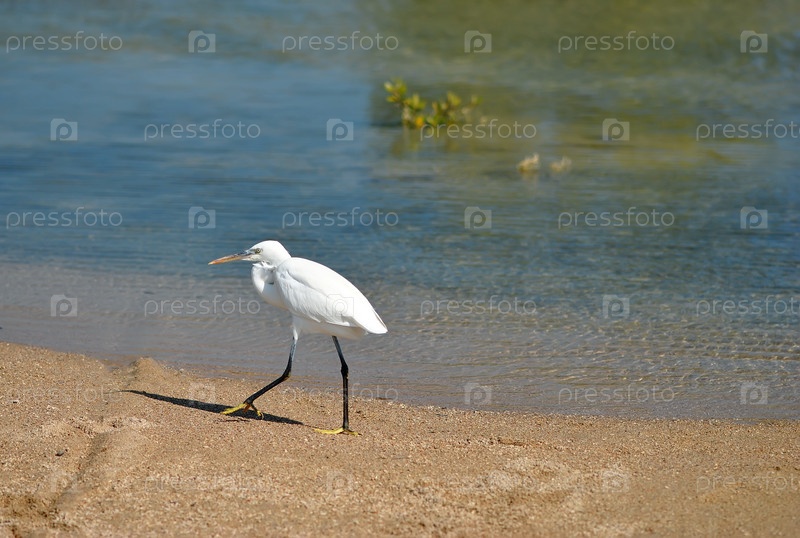 Белая цапля на берегу