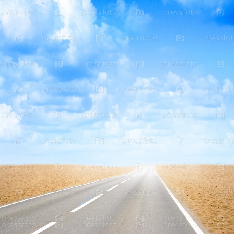Пустынное шоссе под голубым облачным небом