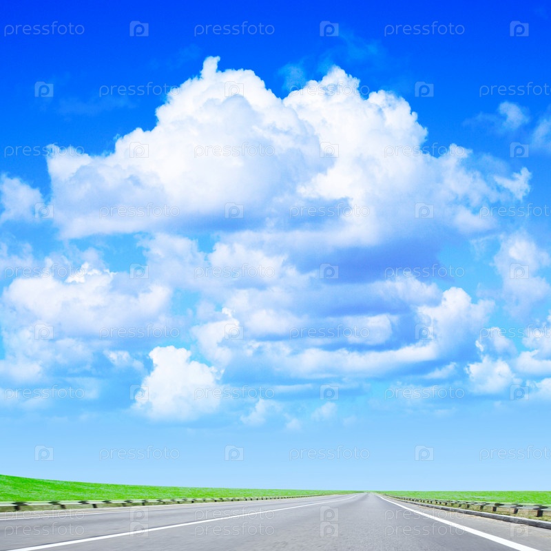 Пустынное шоссе под голубым облачным небом