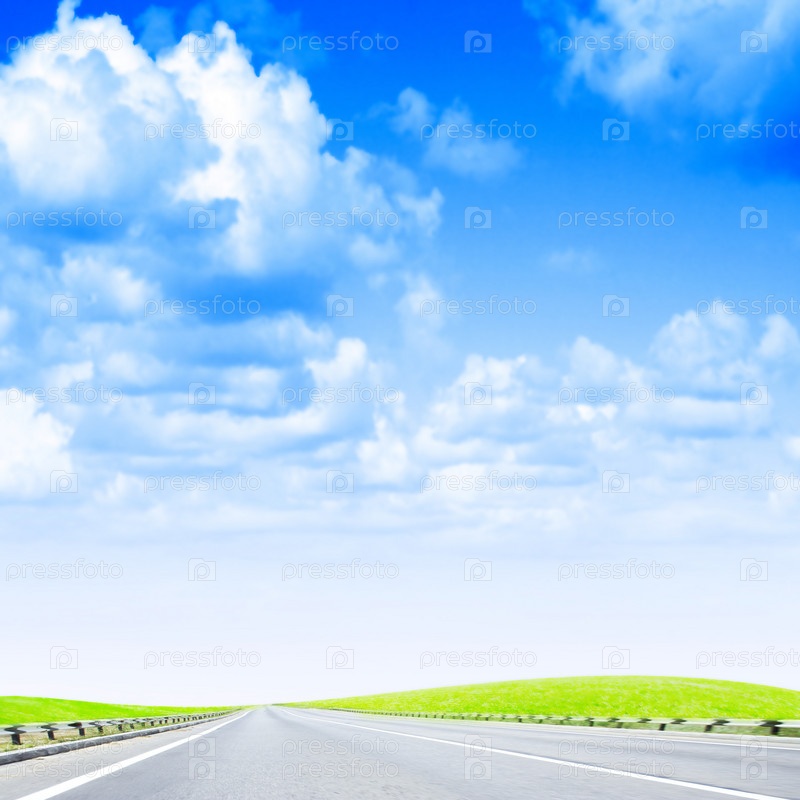 Пустынное шоссе под голубым облачным небом