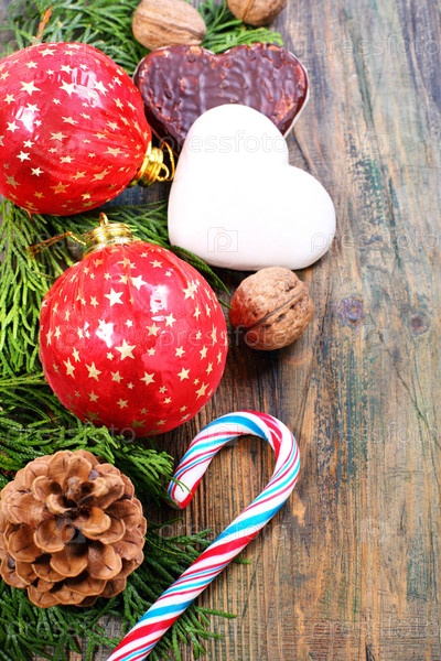Рождественские шары, печенье и орехи