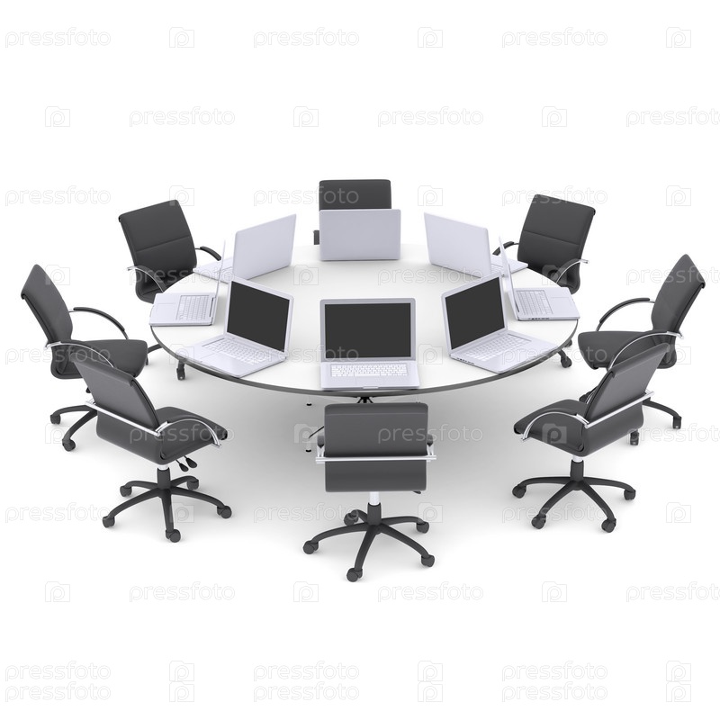 Ноутбуки на круглом столе со стульями