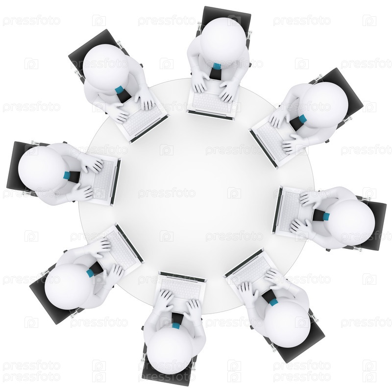 Бизнесмены с ноутбуками сидят за круглым столом
