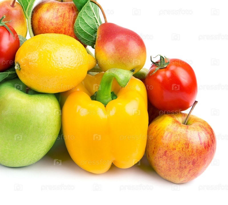 Фрукты и овощи, изолированные на белом фоне