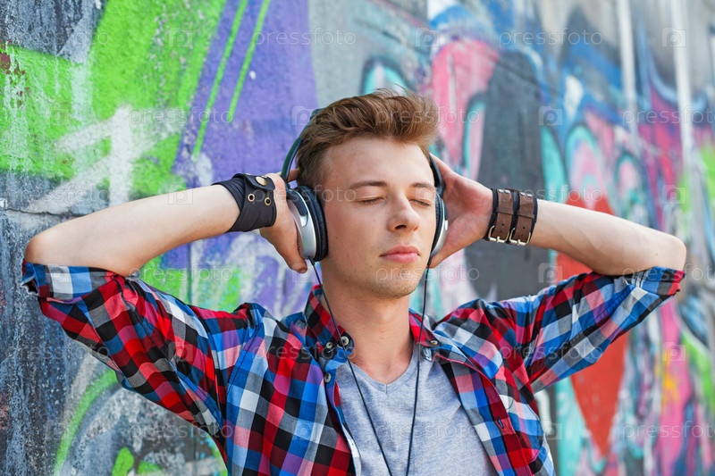 Парень слушает музыку