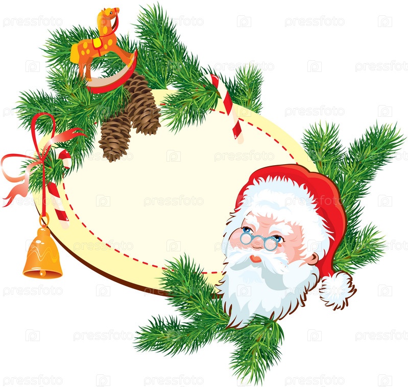 Рождественский или новогодний фон. Голова Санта-Клаус и еловые ветки