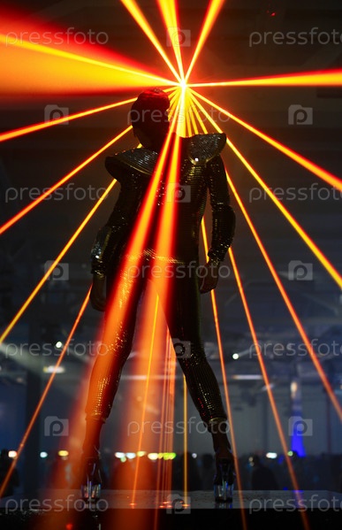 Танцор выступает на лазерном шоу в ночном клубе