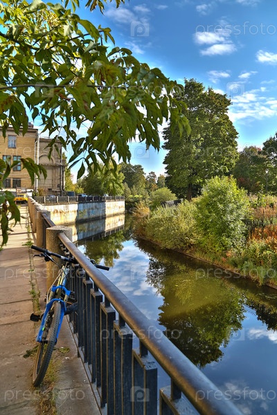 Городской пейзаж в летнее время на берегу реки