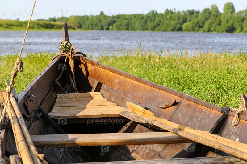 Старая лодка в летний день на реке