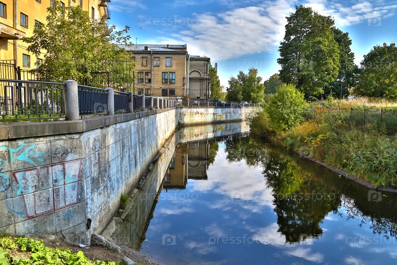 Городской пейзаж в летнее время на берегу реки