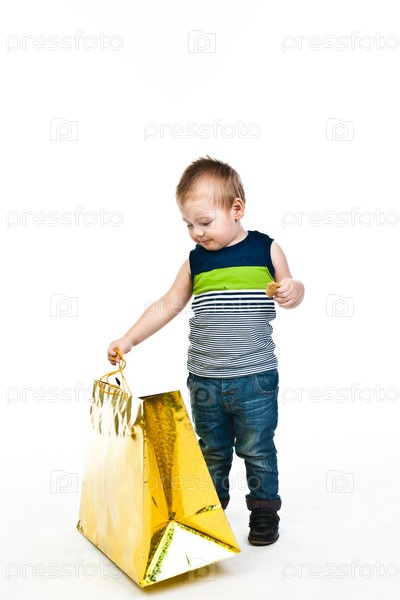 Маленький симпатичный мальчик с подарком