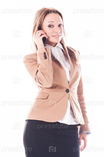Красивая и молодая женщина говорит по телефону